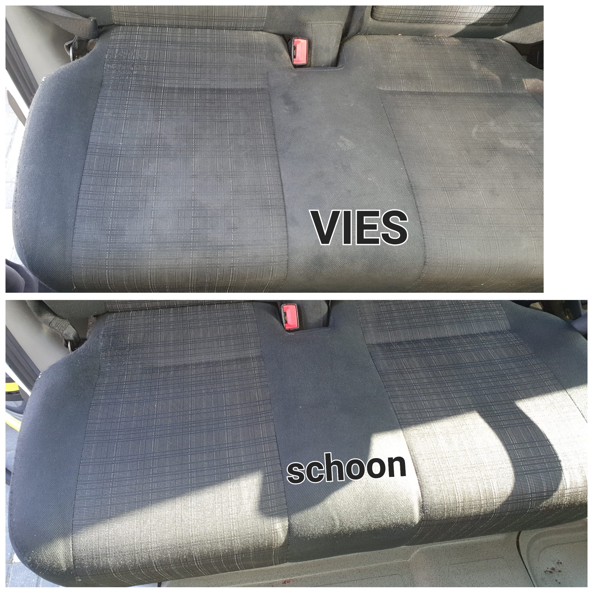 Stoelbekleding stoomdieptereiniging shamporellen vlekken verwijderen stof leer.