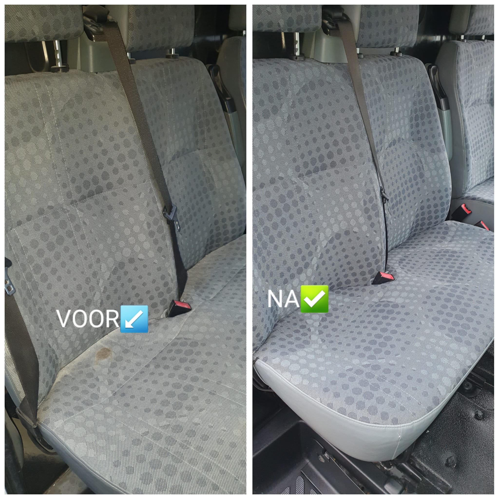 Grondige schoonmaak van stoelen, vloeren, dashboards en moeilijk bereikbare plekken.